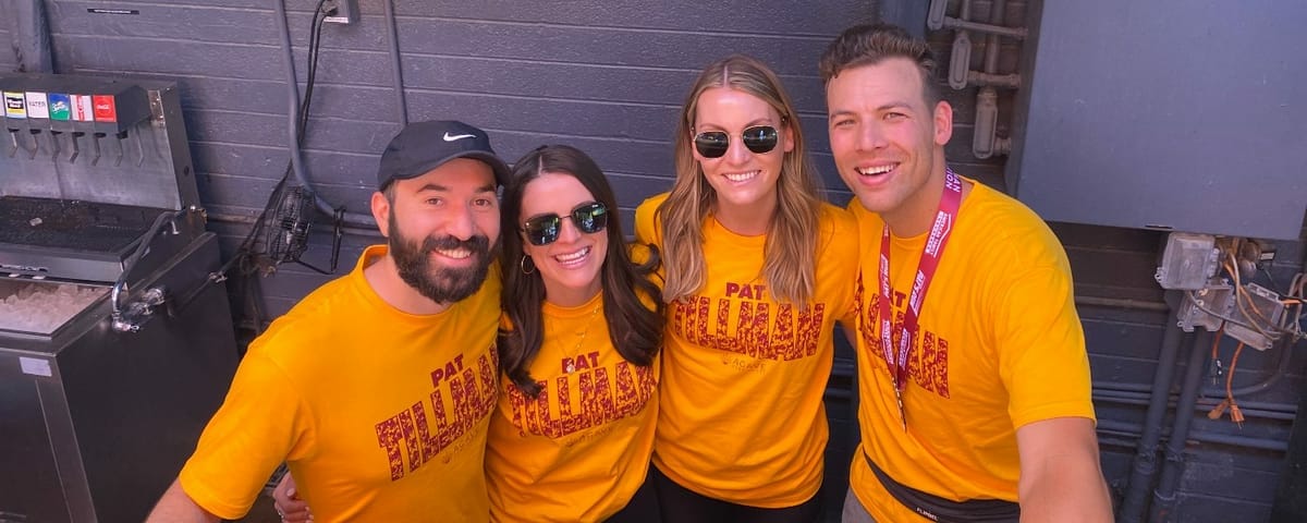 I grew up in Tempe and watched Pat as a star Arizona State University football player who later went on to play professionally for the local Arizona Cardinals. In the spring of 2002, Pat married his high school love, Marie, and upon his return from their honeymoon, announced to the Cardinals he had decided to place his NFL career on hold to enlist in the U.S. Army with his brother, Kevin. The decision shocked many and garnered national media attention despite his refusal to speak publicly about the choice.
