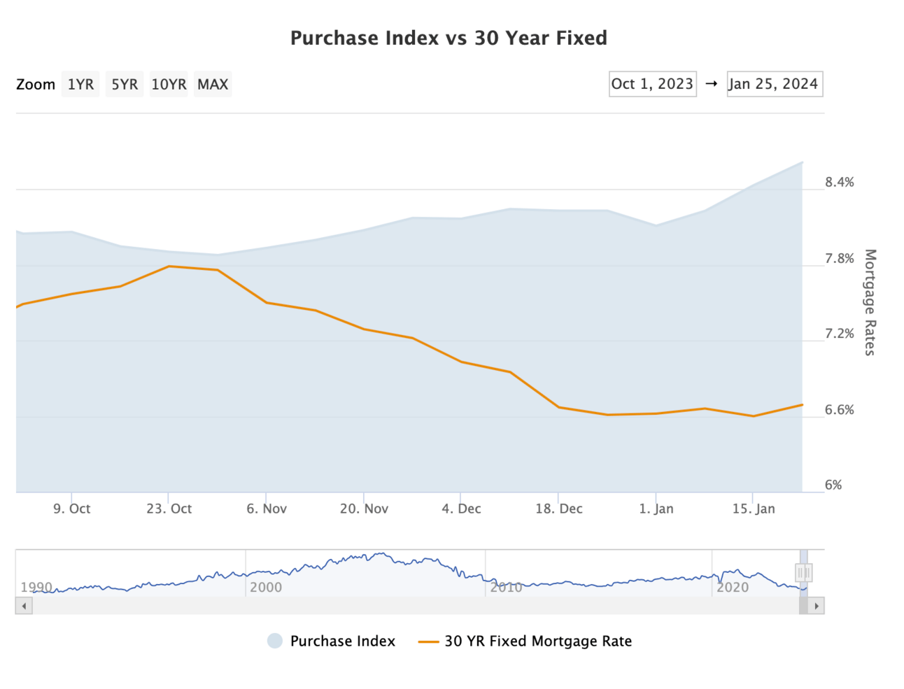 Average Purchase Mortgage Applications from October 2023 to Jan 2024